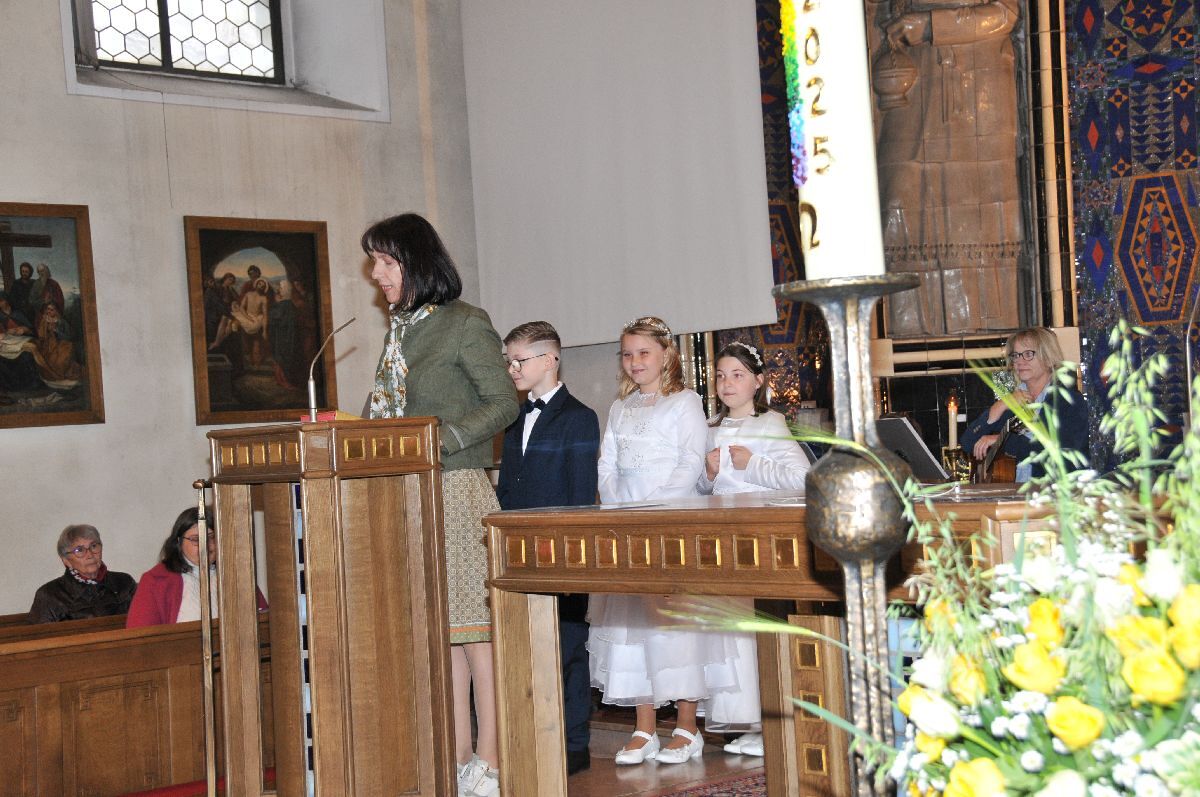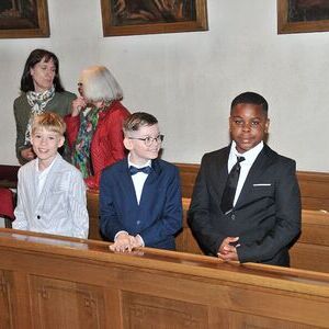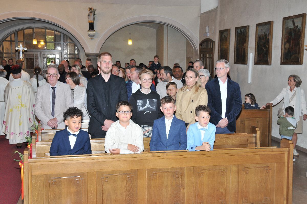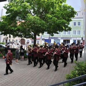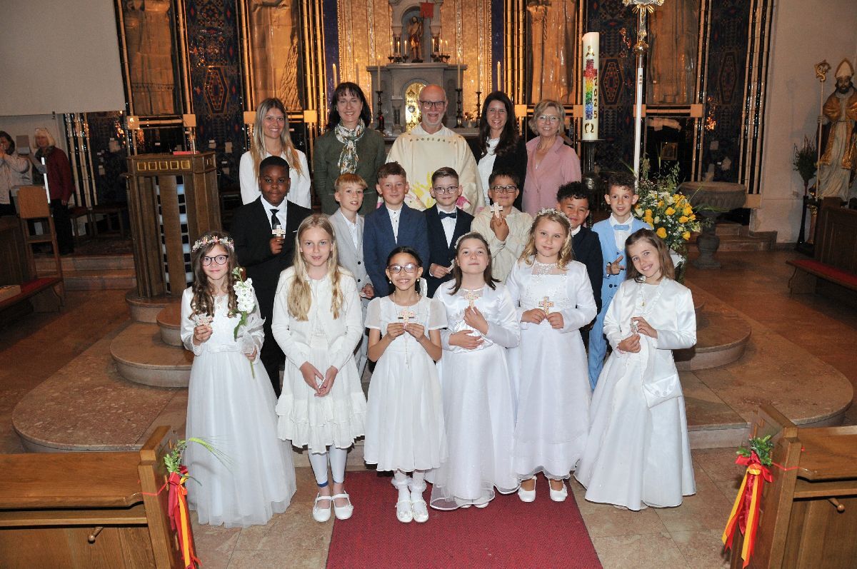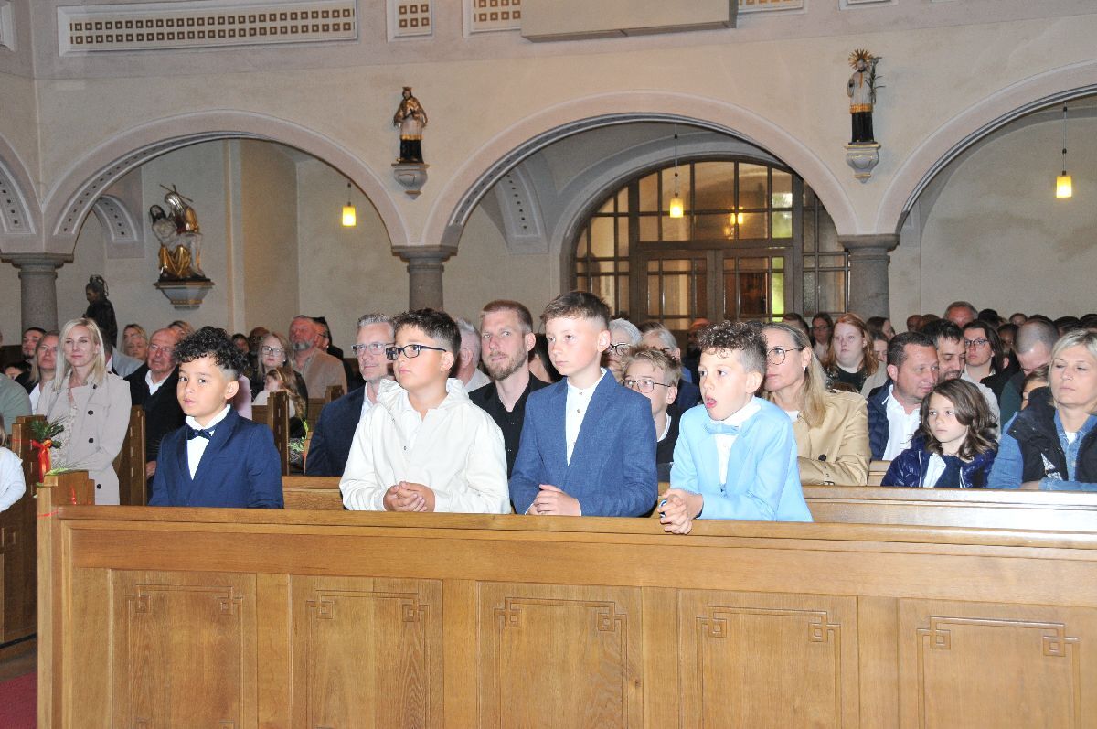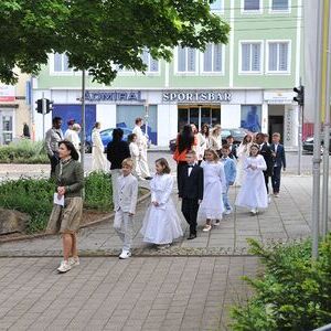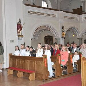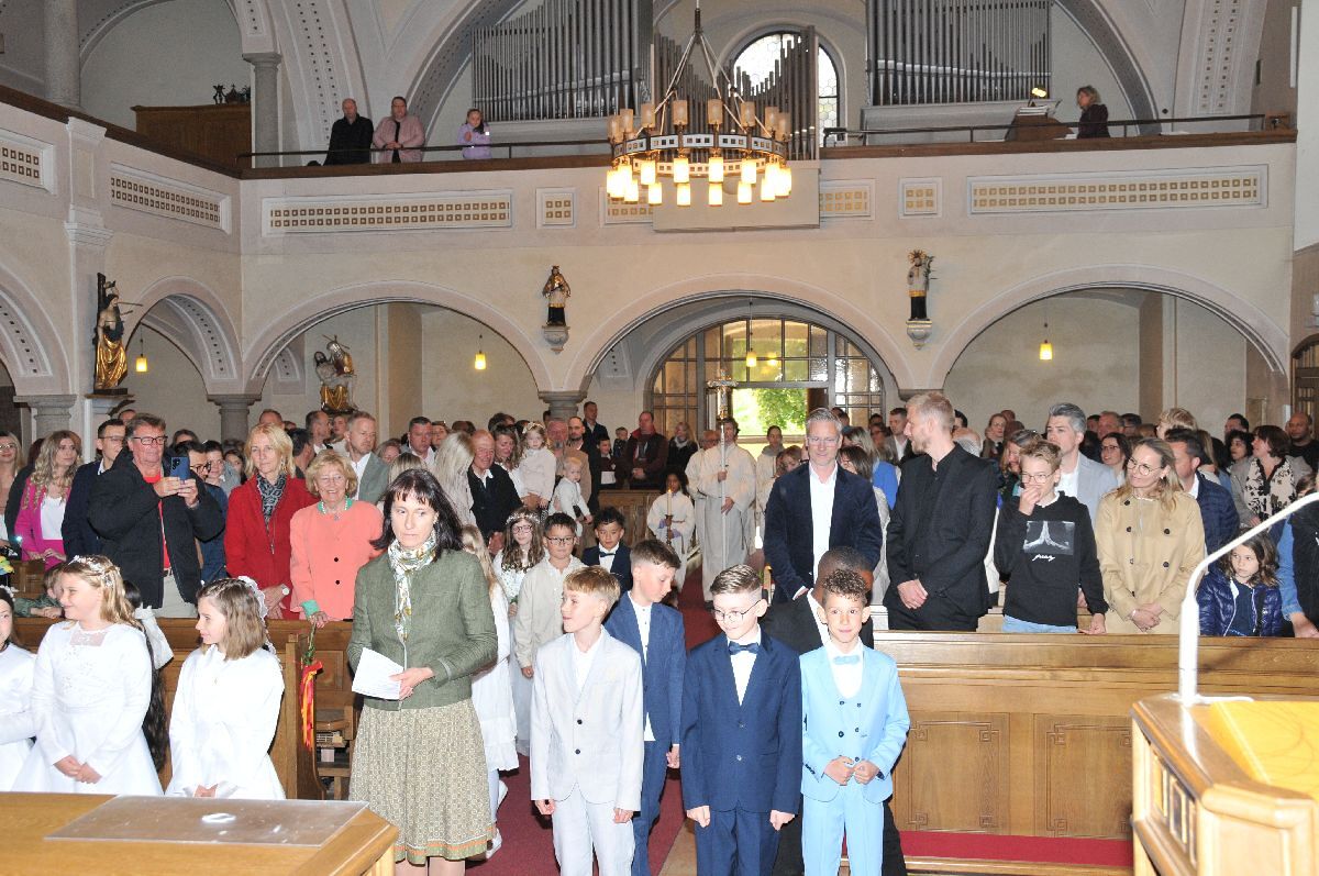 Unter den Klängen der Blasmusik zogen 13 ErstkommunikantInnen in die Pfarrkirche. Nach der Feier wurden von der Männerrunde Getränke, sowie Kaffee und Kuchen angeboten.