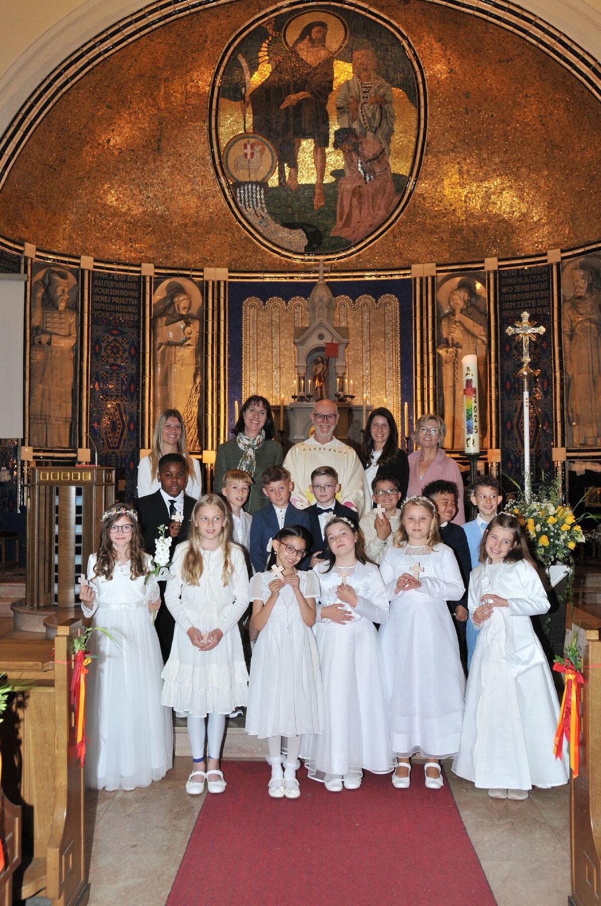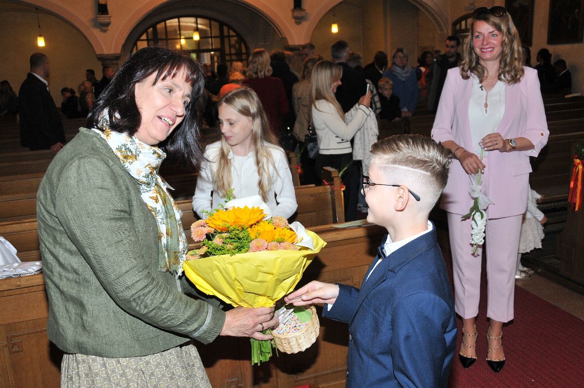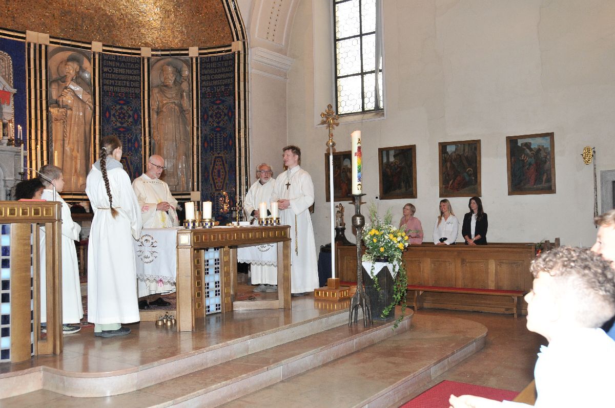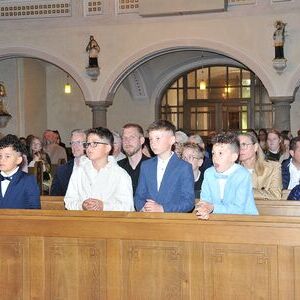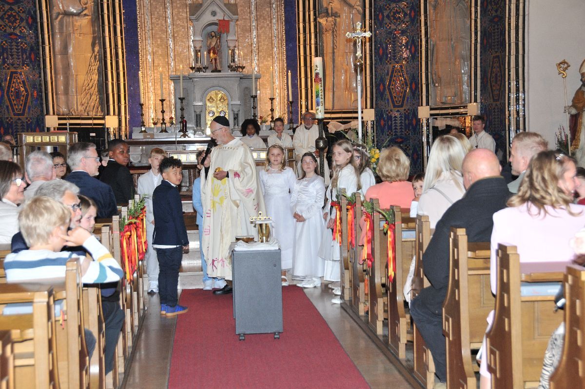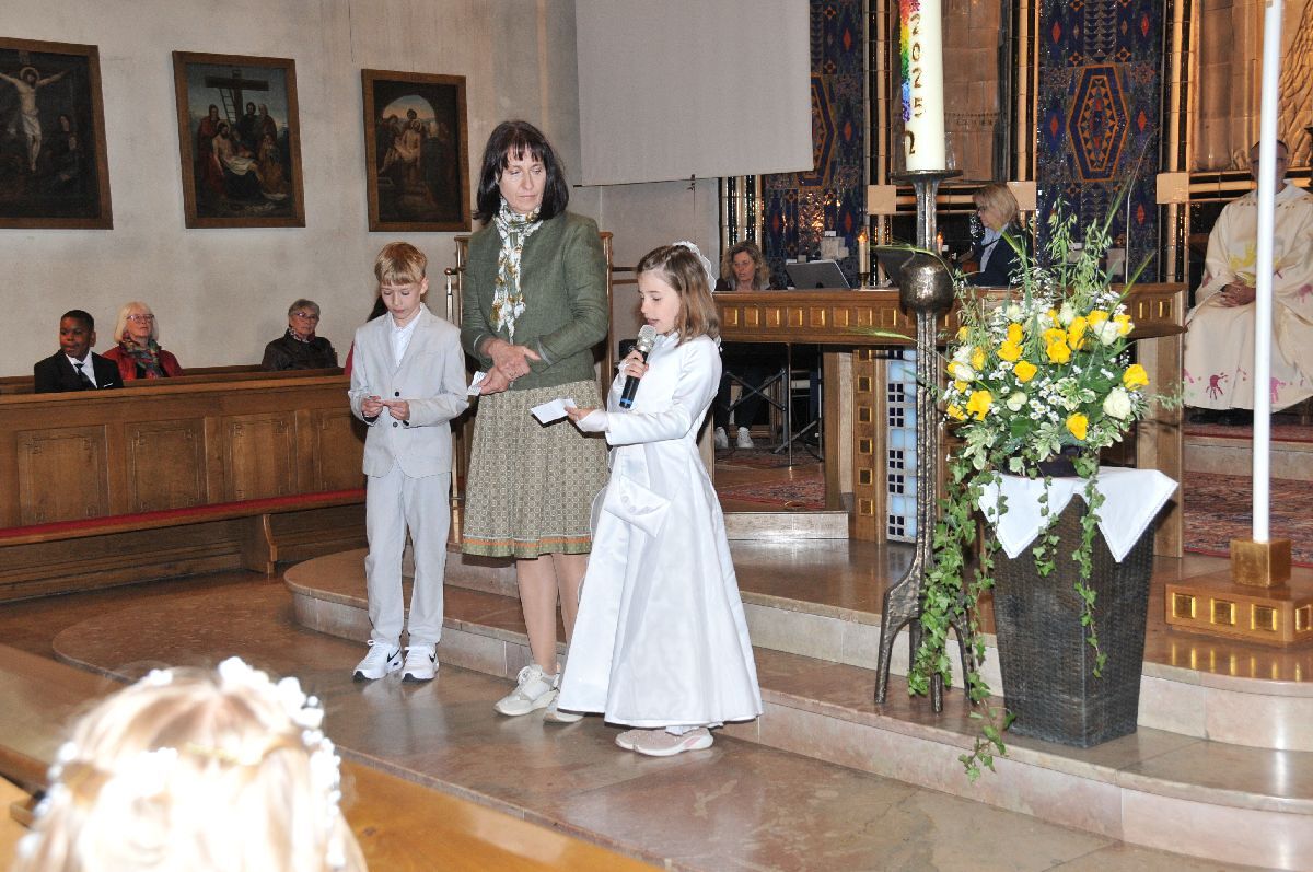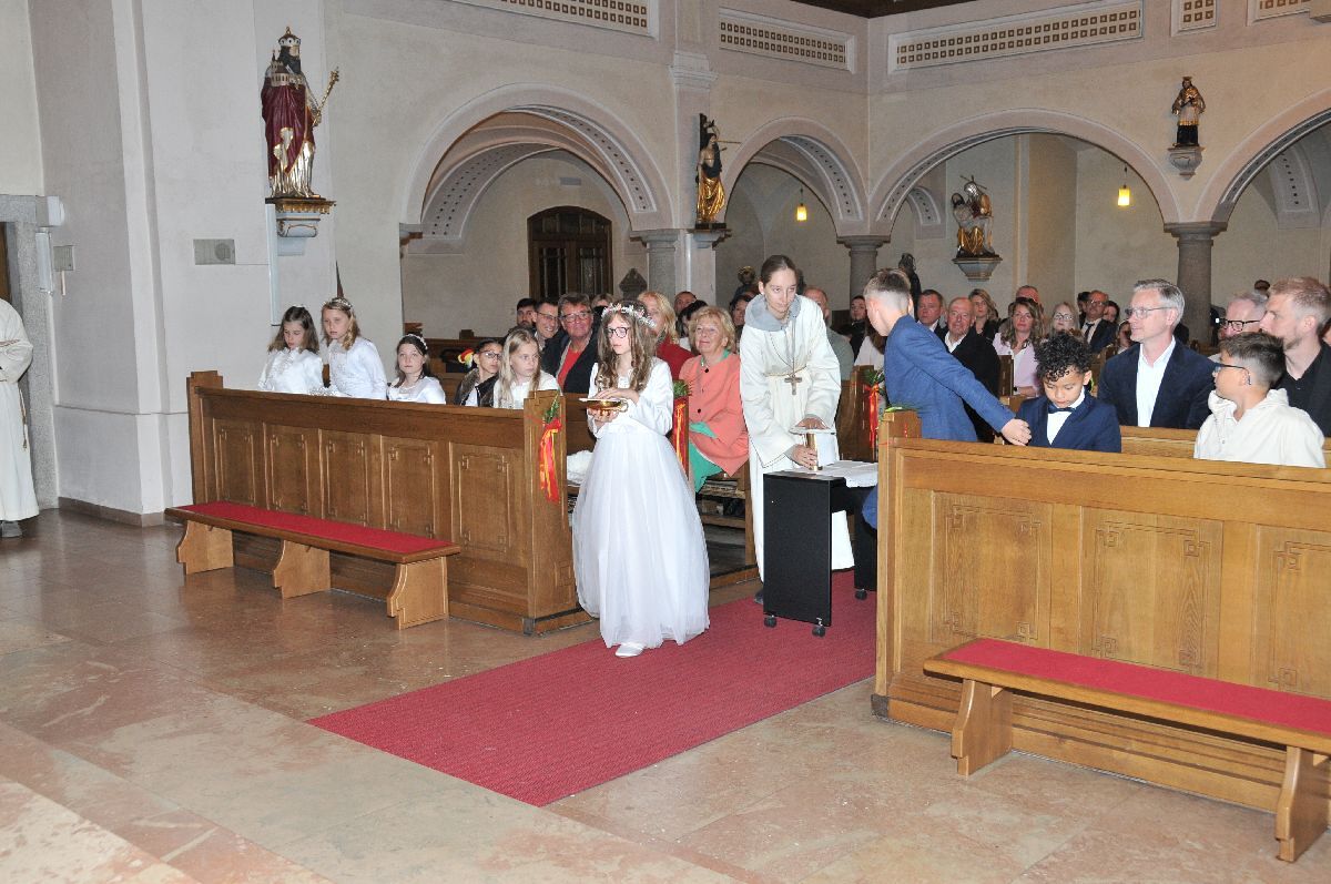 Unter den Klängen der Blasmusik zogen 13 ErstkommunikantInnen in die Pfarrkirche. Nach der Feier wurden von der Männerrunde Getränke, sowie Kaffee und Kuchen angeboten.