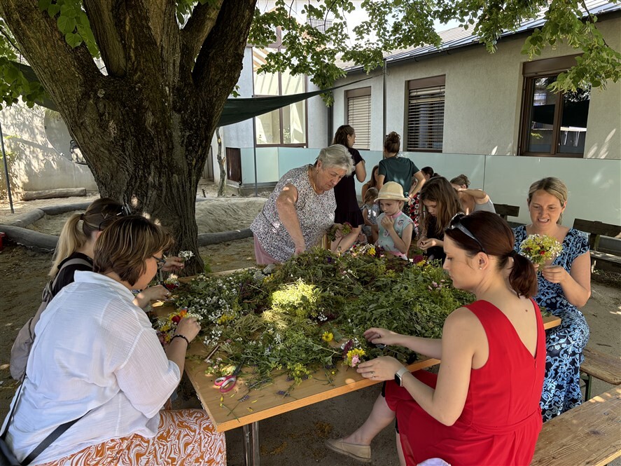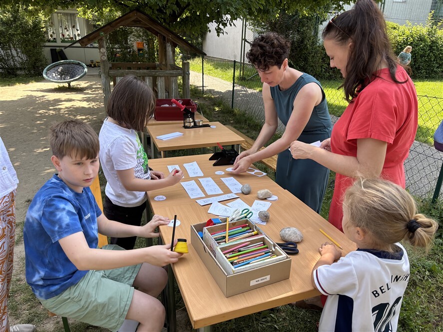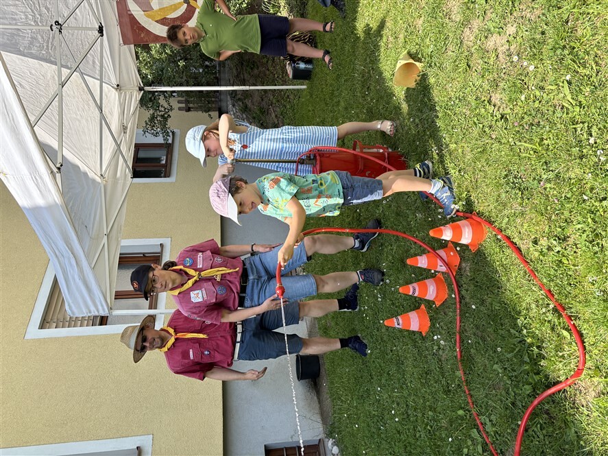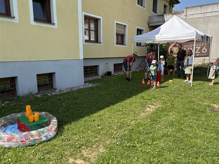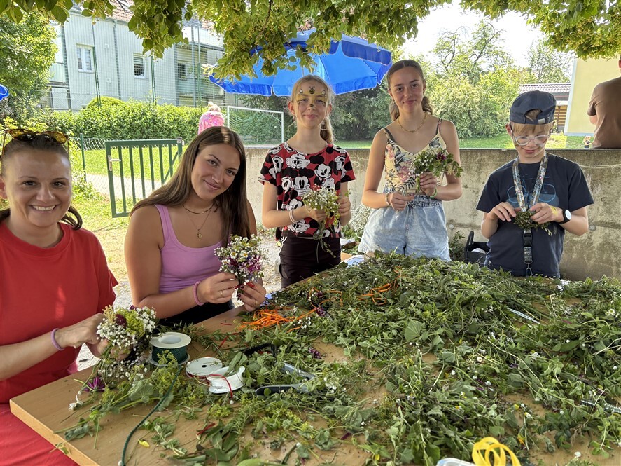 Die Kinder fanden Gefallen am reichhaltigen Kinderprogramm: Es wurden kunstvolle Kräuterkranzl gebunden, die Kinder konnten sich schminken lassen oder sich einen eigenen Button gestalten. Die Malstraße lud ein, der Kreativität freien Lauf zu lassen und wenn’s bei den Ballspielen gar zu heiß wurde, standen die Pfadfinder:innen mit Wasserspielen zur Abkühlung bereit.