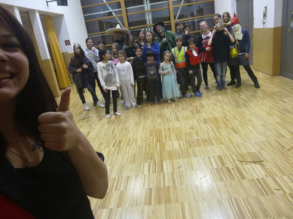 20 Kinder und 10 Gruppenleiter_innen waren dabei, als der Fasching gemeinsam gefeiert wurde. Verkleidet als Hexen, Geister, Cheerleader, Prinzessinnen, Leoparden und vieles mehr hatten wir viel Spaß. Am Anfang spielten wir Reise nach Jerusalem im Jungscharstyle. Anschließend wurden die Kinder in Gruppen eingeteilt, in denen sie dann im Anschluss einige Stationen, wie Mehl schneiden, Masken basteln, einen Hindernisparcours oder Münzen in ein Gefäß schnipsen, absolvierten. Zur Stärkung gab es dann für alle Faschingskrapfen. Abgerundet wurde der Nachmittag mit verschiedensten Spielen im Saal.